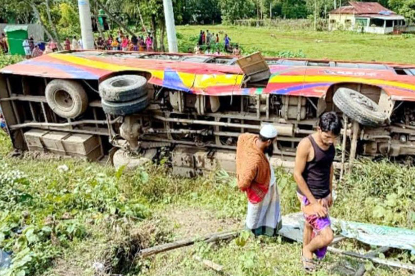 সিলেট-ঢাকা মহাসড়কে উল্টে গেলো যাত্রীবাহী বাস