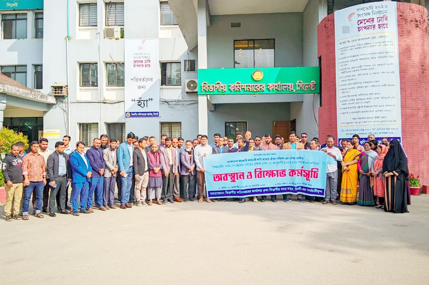 টানা আন্দোলনে সিলেট বিভাগীয় কমিশনার কার্যালয়ের কর্মচারীরা