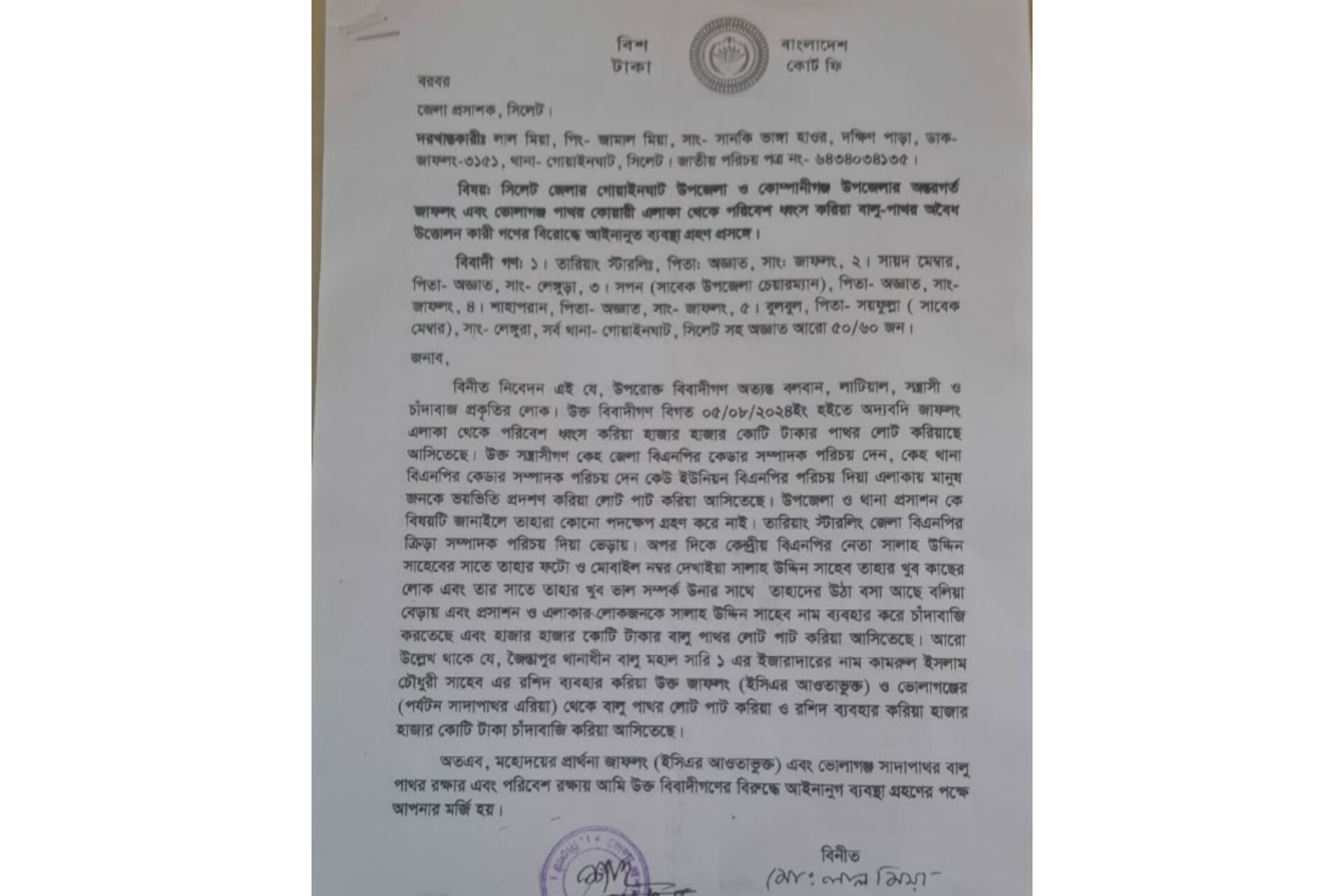 তিনি বলেন- গত ২৪ জুলাই জাতীয় একটি গণমাধ্যমে আওয়ামী লীগের কিছু নেতাদের দক্ষিণ সুরমা থানার একটি মামলা থেকে অব্যাহতি দিতে ওসমানীনগর উপজেলা বিএনপির সভাপতি সম্পাদকের স্বাক্ষরকৃত একটি চিটিকে কেন্দ্র করে প্রকাশিত সংবাদকে ঘিরে তোলপাড় হয়। সাথে সাথে দুই উপজেলার বিএনপি নেতারা এর প্রতিবাদ জানান। এ ঘটনায় পরদিন থানায় একটি সাধারণ ডায়রি করা হয় (জিডি নং-১২৪৭)।